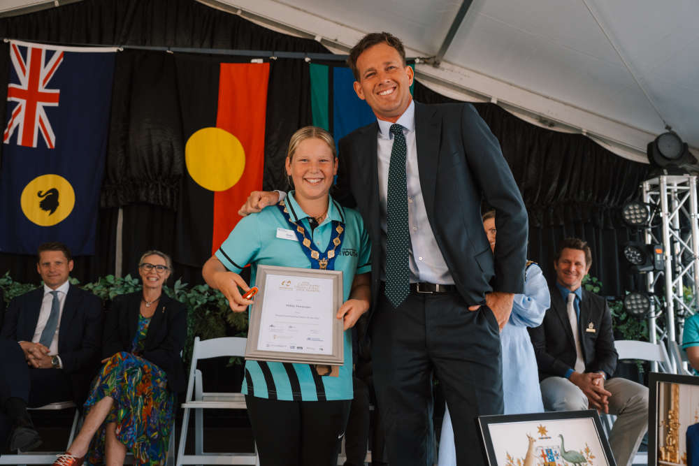 Young Community Citizen of the Year Millie Penman with Rhys Williams MLA. PIC: Supplied